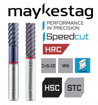 Высокопроизводительная концевая фреза , особенно подходящая для обработки закаленных и высокопрочных сталей. Высокий уровень жесткости обеспечивает хорошую скорость подачи и длительный срок службы, в то время как угол спирали создает очень хорошее качество поверхности обрабатываемой детали. Фреза используется для кругового фрезерования (чистовая обработка). Для небольших глубин также возможна резка, в этом случае скорость подачи должна быть уменьшена на 50%.