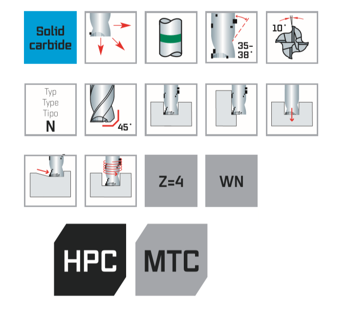 Твердосплавная концевая фреза для универсального применения: короткая, стабильная конструкция и мягкий рез (10 градусов). Особенно подходит для черновой, чистовой обработки и обработки канавок в фрезерных центрах с ЧПУ, в токарных, фрезерных и комбинированных токарных станках. Различные углы спирали обеспечивают плавность хода без вибрации и превосходную поверхность. Высокая производительность резки.