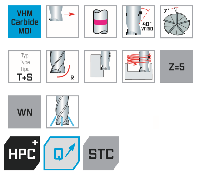 Высокопроизводительная концевая фреза, особенно подходящая для резки титана, никеля, инконеля и специальных никель-хромовых жаропрочных сплавов. Различные углы спирали влияют на плавность хода без вибрации и превосходную поверхность. Очень высокая производительность резки благодаря идеальному взаимодействию материала, геометрии и покрытия.