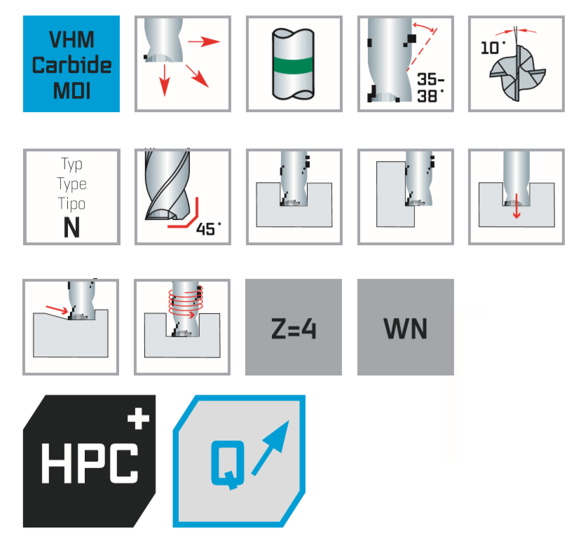 Высокопроизводительная концевая фреза для универсального применения. Чистовая, черновая и черновая обработка одним и тем же инструментом. Различные углы спирали влияют на плавность хода без вибрации и отличную поверхность. Поколение 4.0 устанавливает новые стандарты производительности резки.