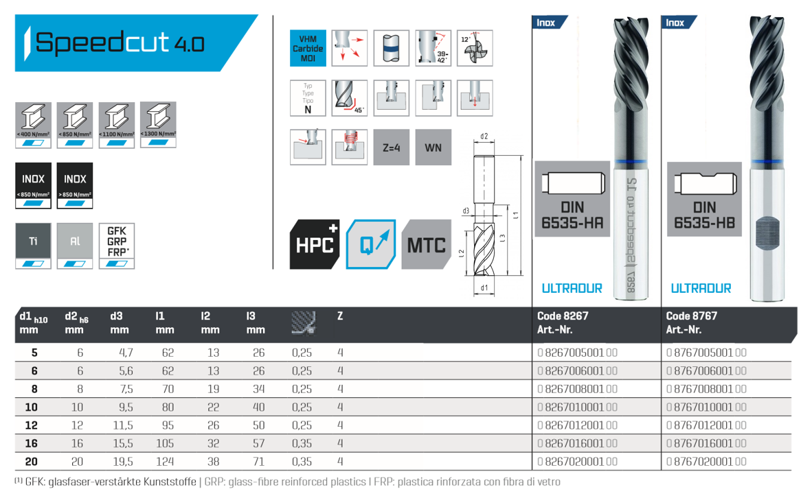 SPEEDCUT 4.0 Inox, Ø 6.0 HPC End mill, Z=4, 39-42°, extra long, relieved, cyl.shank DIN 6535-HA,DIN 6535-HB, ULTRADUR