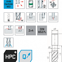 Высокопроизводительная концевая фреза для универсального применения. Чистовая, черновая и черновая обработка одним и тем же инструментом. Различные углы спирали влияют на плавность хода без вибрации и отличную поверхность. Высокая производительность резки.