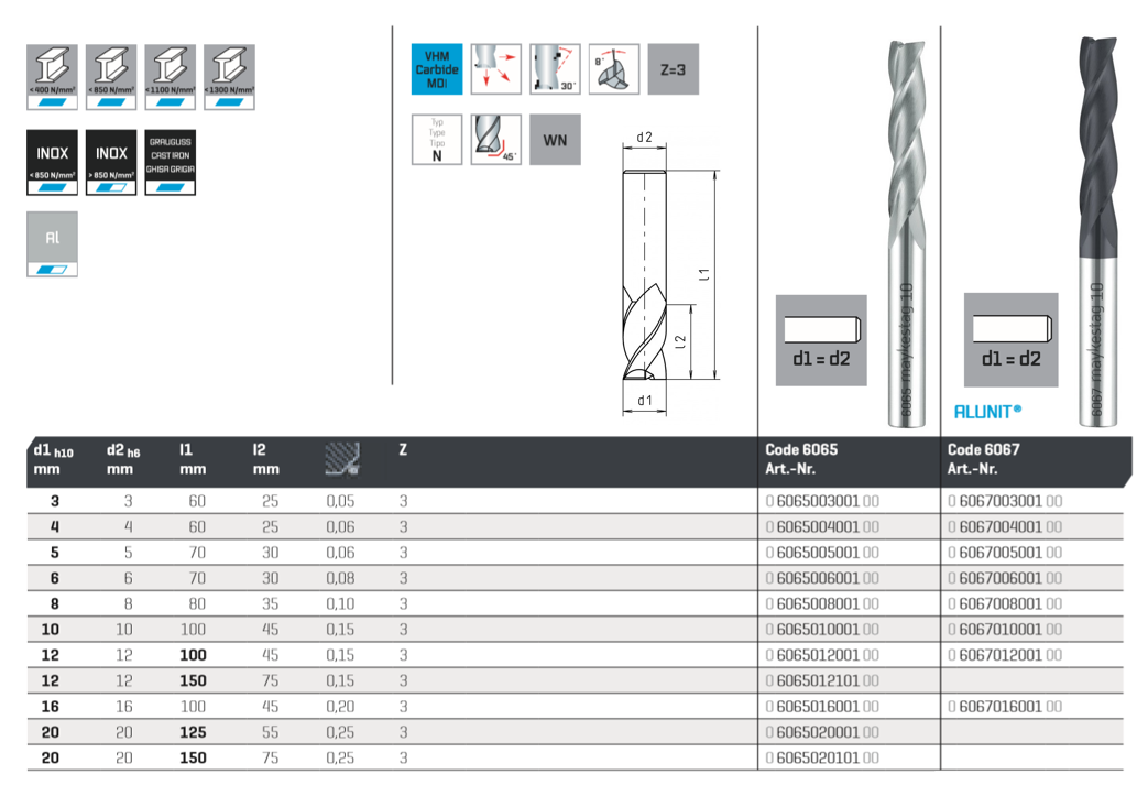 Рекомендуется для фрезерования материалов со средней и высокой прочностью до 1300 Н / мм². Для сверления и последующего продольного и проходного фрезерования.