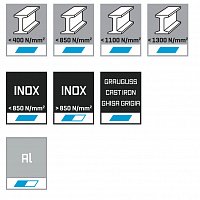 Рекомендуется для фрезерования материалов со средней и высокой прочностью до 1300 Н / мм². Для сверления и последующего продольного и проходного фрезерования.