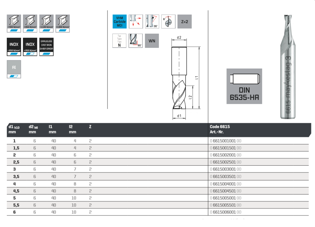 Область применения: Рекомендуется для фрезерования материалов средней и высокой прочности. Сверление на всю глубину и продольное фрезерование с точной посадкой.