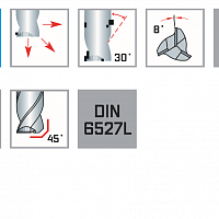 Рекомендуется для фрезерования материалов со средней и высокой прочностью до 45 HRC. Фрезерные канавки с большей глубиной сверления, точные посадки, также подходит для торцевого и кругового фрезерования. Высокие показатели удаления металла и плавный ход обеспечивают превосходное качество поверхности.