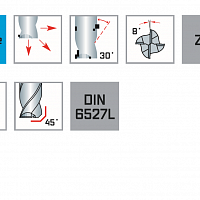 Рекомендуется для фрезерования материалов со средней и высокой прочностью до 45 HRC. Фрезерные канавки с большей глубиной сверления, точные посадки, также подходит для торцевого и кругового фрезерования. Высокие показатели удаления металла и плавный ход обеспечивают превосходное качество поверхности.