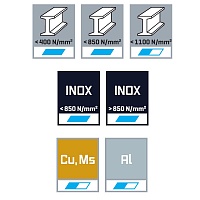 Применимость: алюминий, сталь, нержавеющая сталь, цветные металлы
