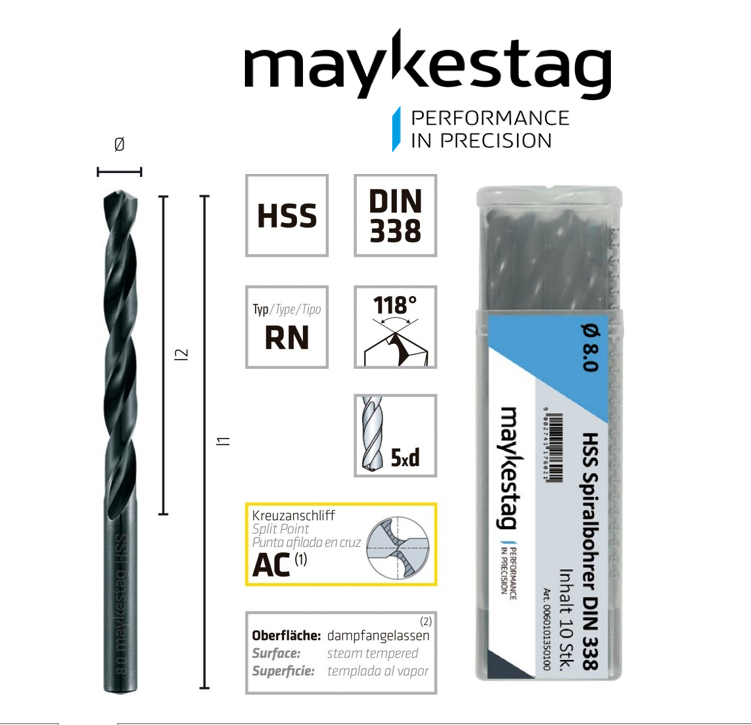 Спиральные сверла высшего качества для обычной и легированной стали, стальных отливок, отливок из серого чугуна, медных сплавов, никеля и серебра, графита и аналогичных материалов.
