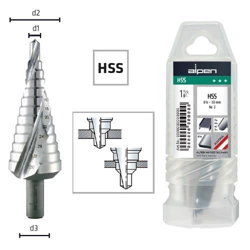Сверло ступенчатое ALPEN HSS d 4,0-20,0