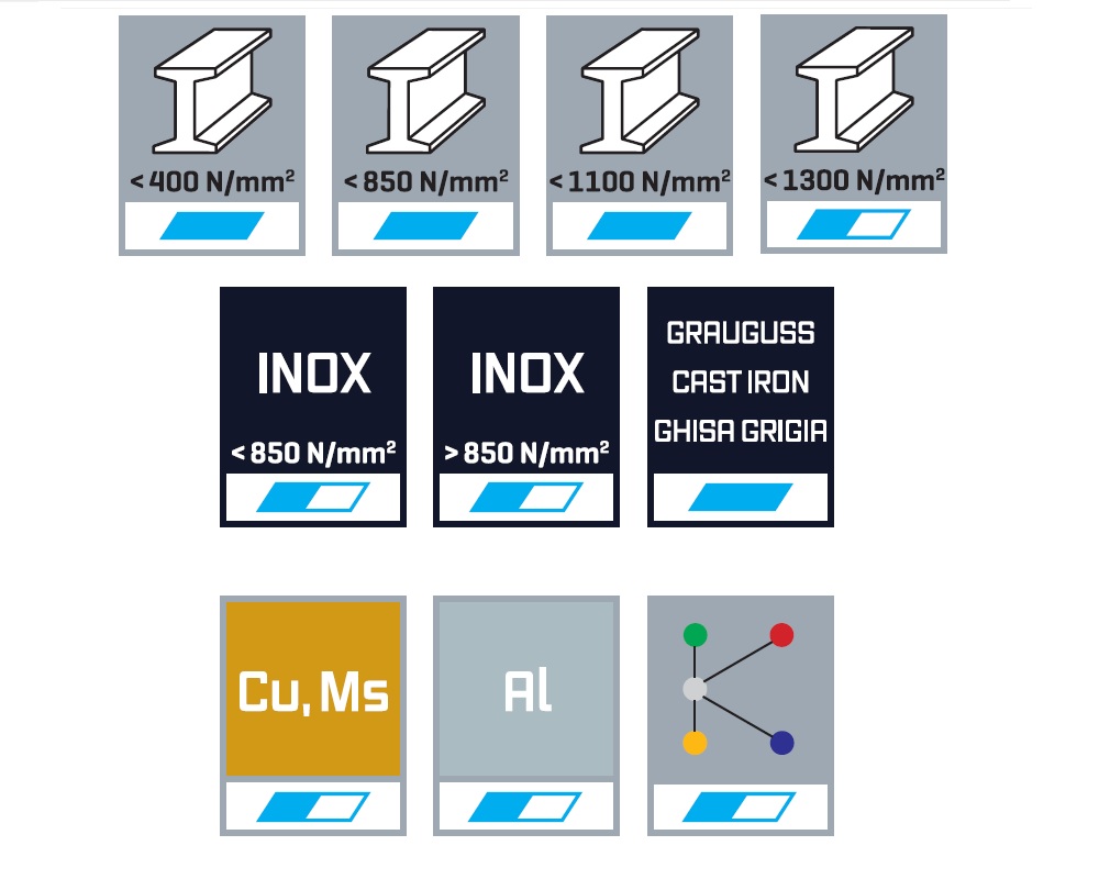 Применимость: алюминий, пластмасса, сталь, нержавеющая сталь, цветные металлы, чугун